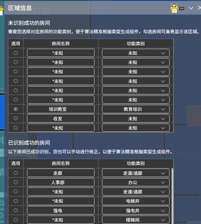 在完成房间识别后,可调整房间的功能类别,以提升算法的准确性。