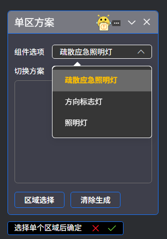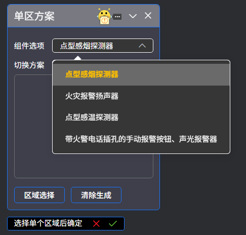组件选择列表内选择所需组件,点选单个区域,✔勾选确定,生成点位布置。