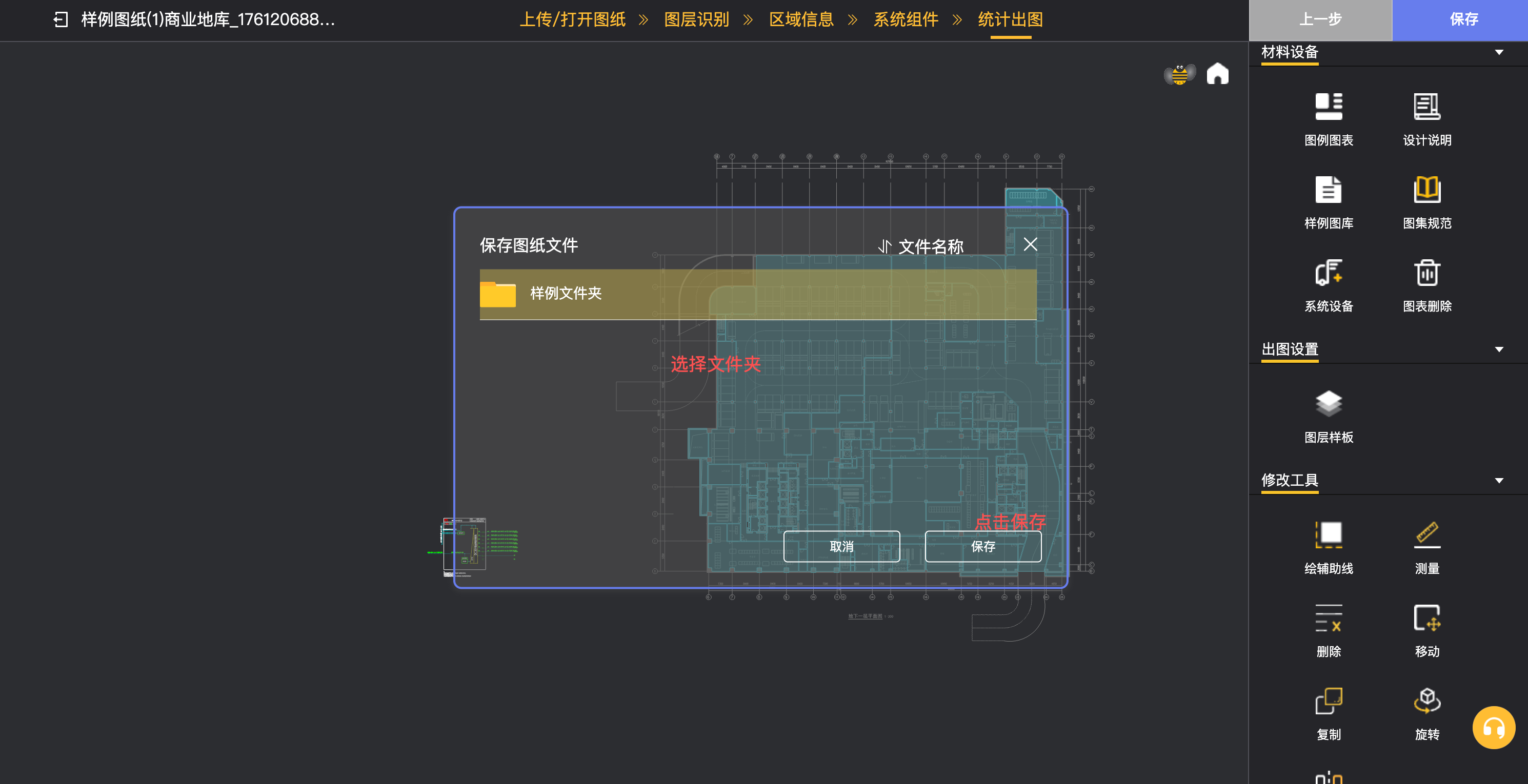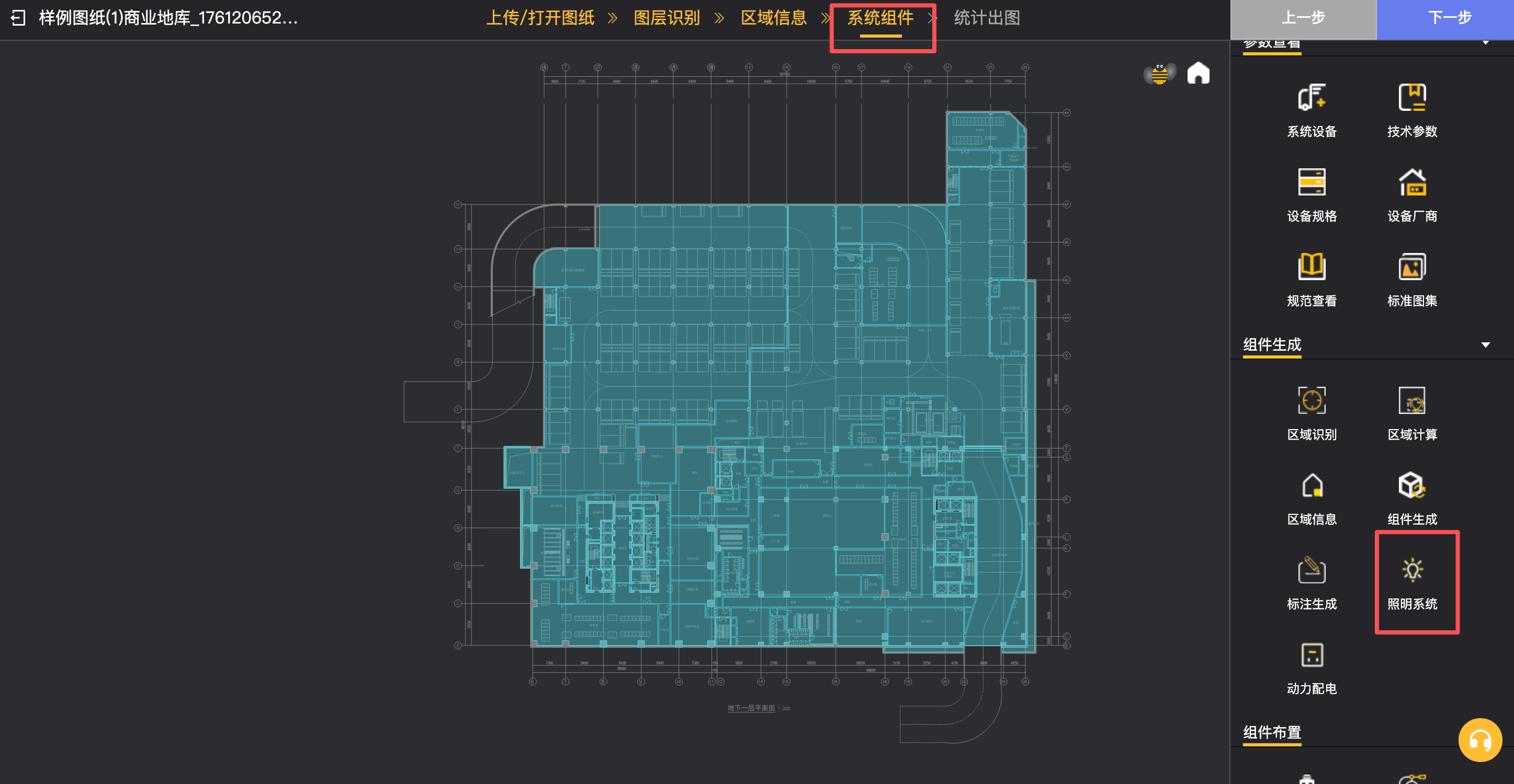 如果你只是想快速体验系统图生成功能,可以直接选择 平台提供的样例图纸。 使用样例图纸不会影响后续照明系统图的生成效果,非常适合新手用户测试和演示。