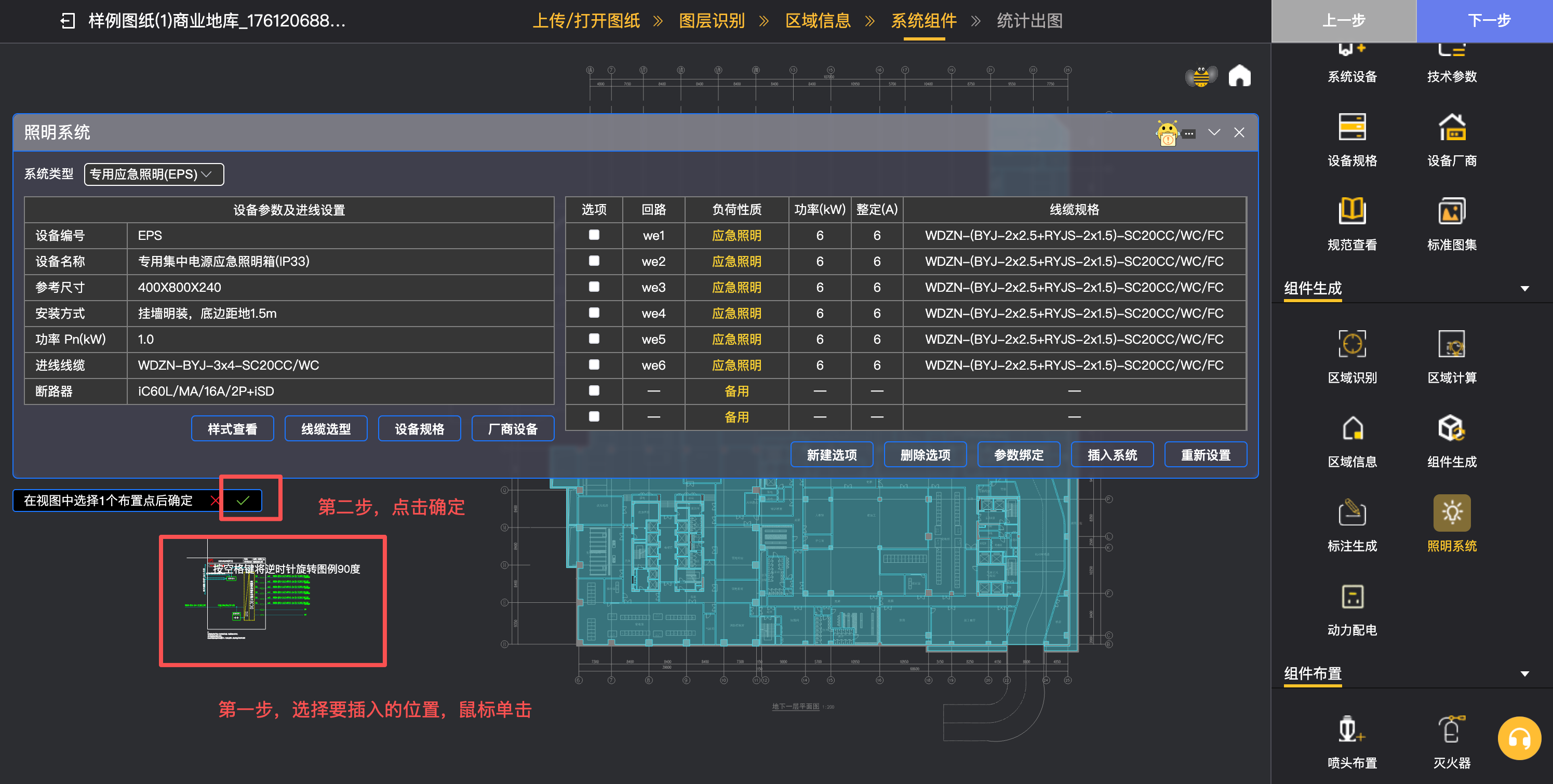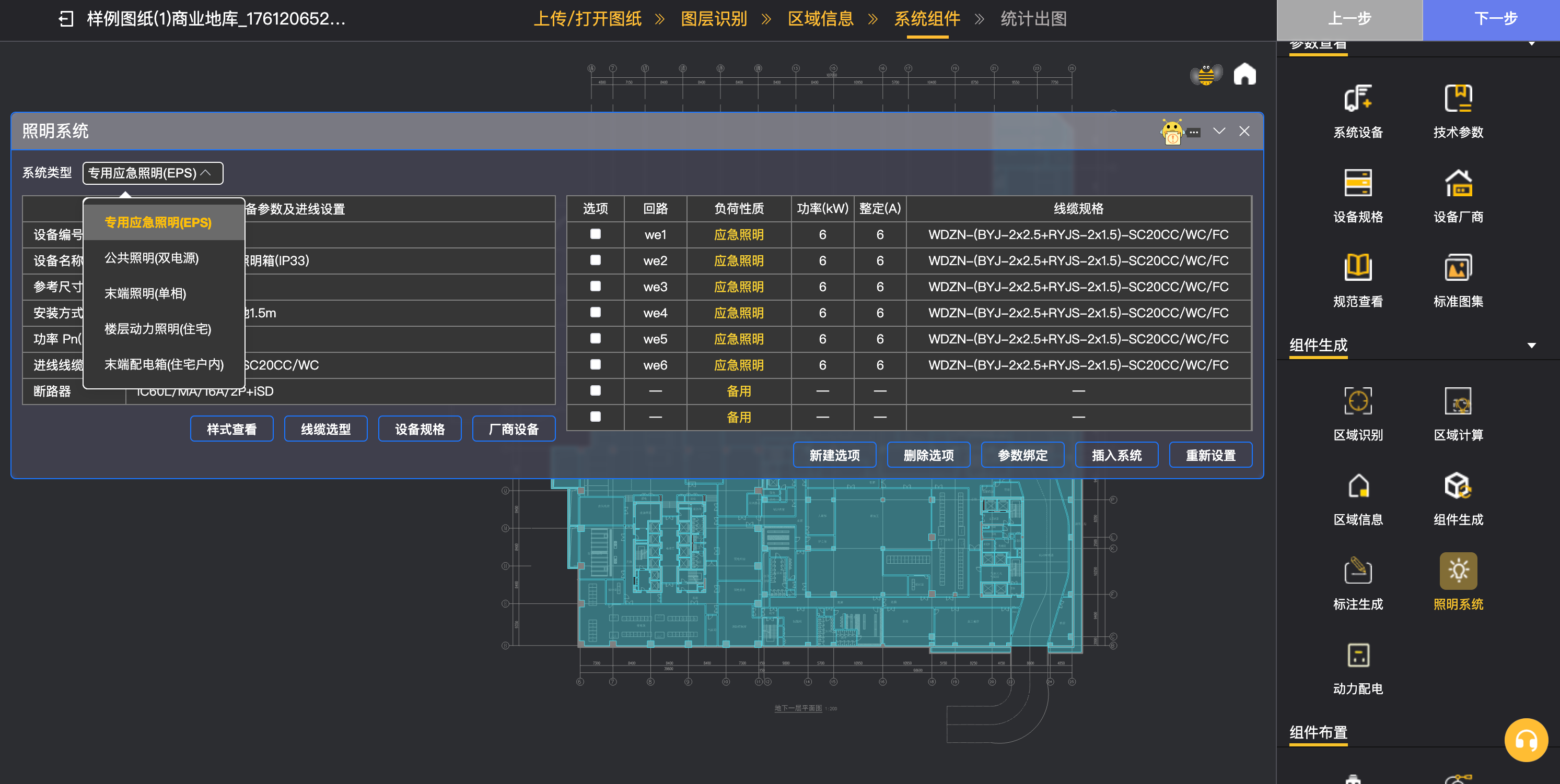 此处可生成包括普通照明、应急照明、疏散指示等在内的多种系统图。