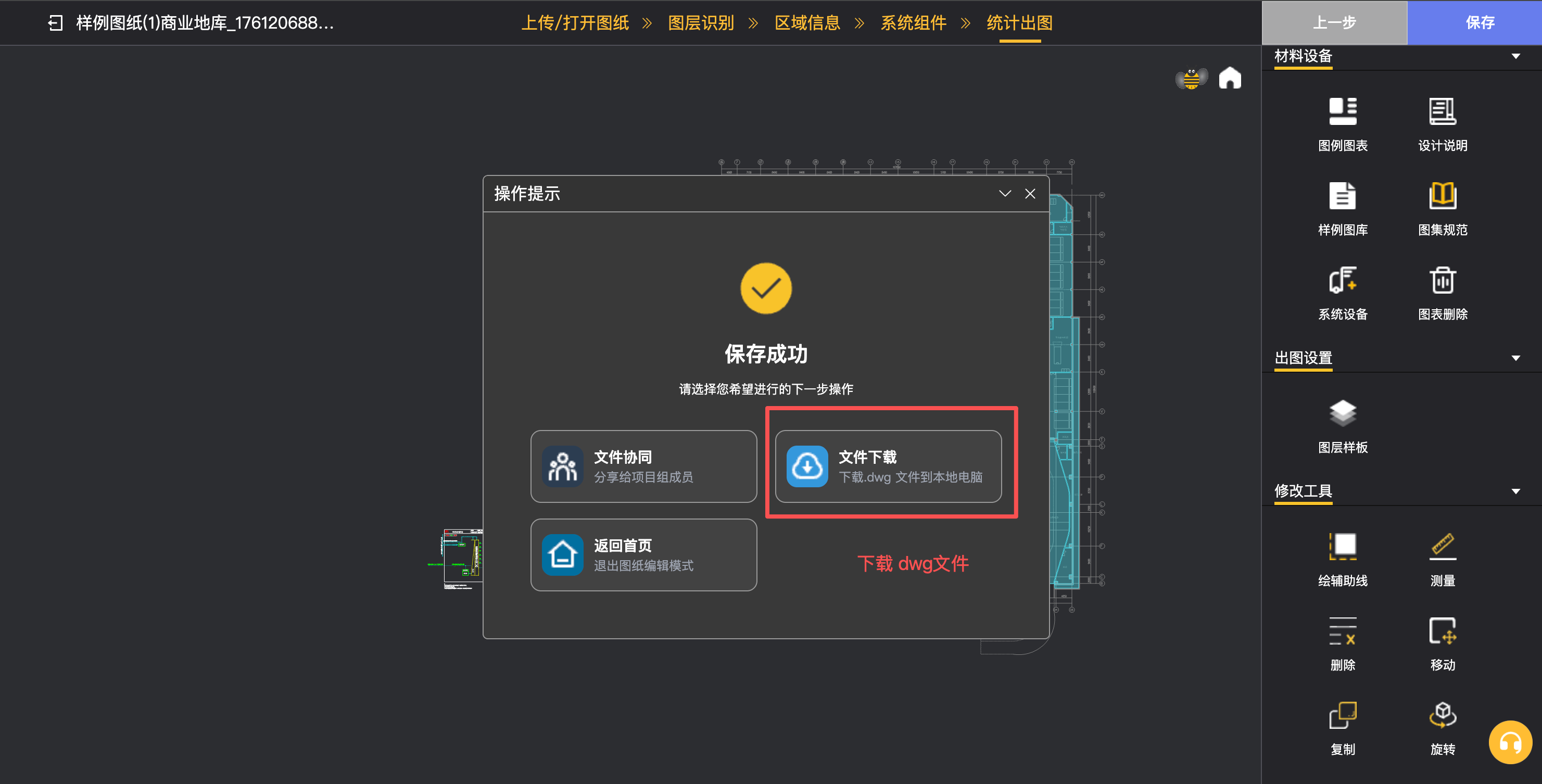 第二步:上传图纸 / 执行图层识别(可使用样例图纸)