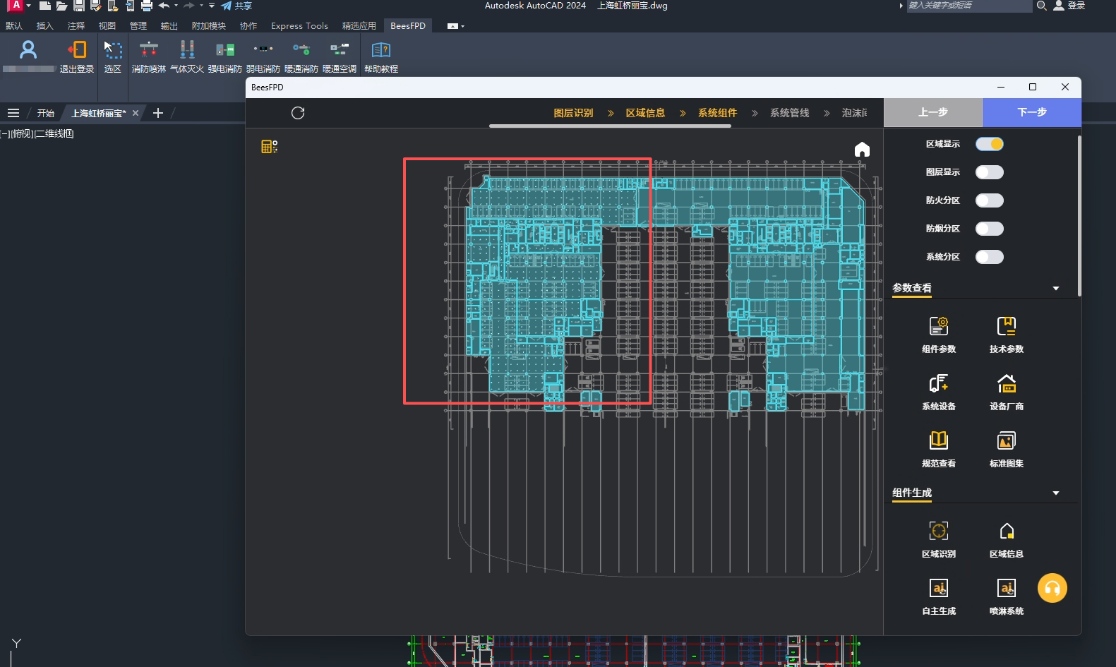 系统使用流程可参考学习中心 https://work.beesfpd.com/#/learning-center示例,我们在系统中插入了喷淋系统组件