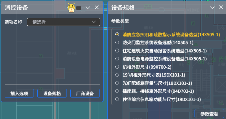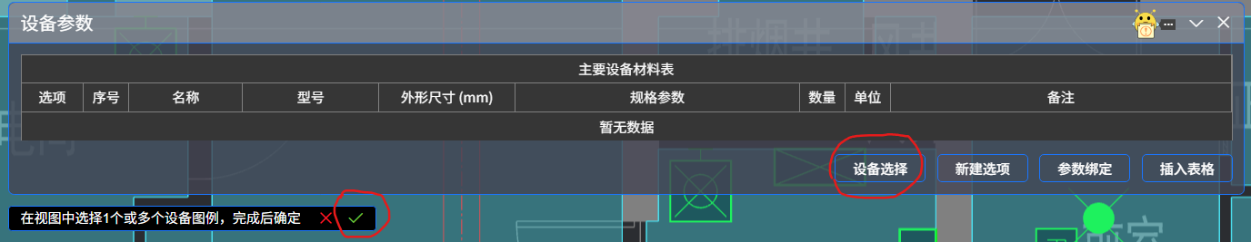 在图面点选设备(按住ctrl可选多个设备),✔勾选确认后,即可得到设备参数列表,并可在图面插入表格。