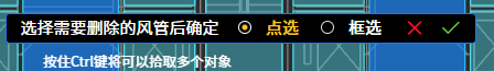 点击“删除风管”,提示如下,可“点选”或“框选”删除已画风管。