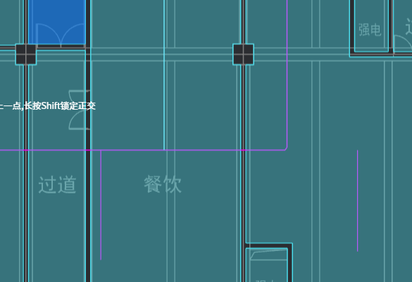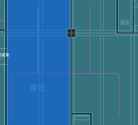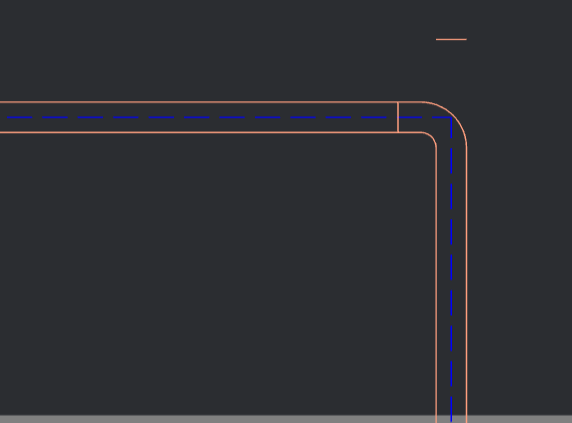 单选“斜倒角”或“弧倒角”二者之一,输入倒角半径值,点击“选择管线”,连续点击不平行的二根管线,勾选☑️,倒角生成成功,如下图所示:(当倒角半径输入0时,二根管线形成正交)