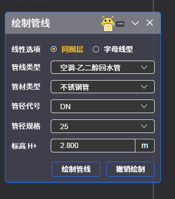 点击“空调水管”按钮,弹出如下对话框: