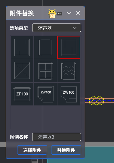 可批量替换多个附件,在平面图点选已绘制的附件CTR+,点击☑️确认,再点击“替换附件”,选中的附件统一被替换成新选附件。