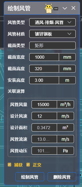 点击“编辑工具”里的“绘制风管”按钮,弹出如下对话框: