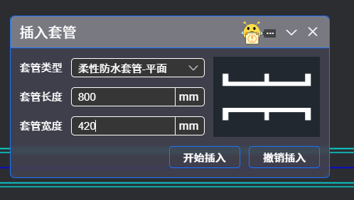 在下拉列表中选择“套管类型”,编辑“套管长度”和“套管宽度”信息,点击“开始插入”按钮,弹出如下提示: