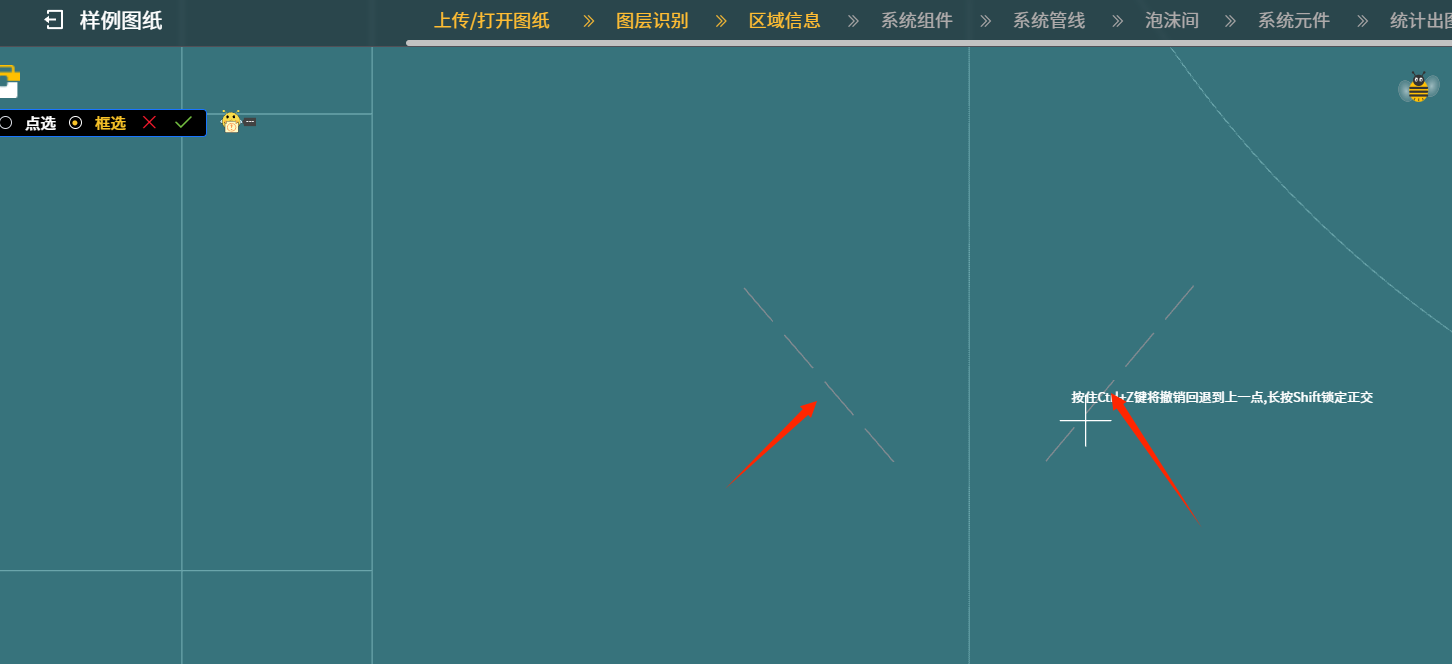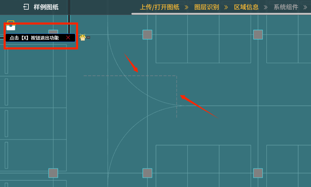 举例一:点“绘辅助线”图标后,下图二中箭头处可绘制任意辅助直线,画好后点击“√”以保存。红框内“X”按钮是退出此功能按钮。