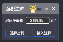 按住 Ctrl 键可以点选多个房间,采用Ctrl + A 则可以全选所有房间。点击绿色勾选图标以确认所选区域的房间,系统将自动计算所有选定房间的净面积总和。随后点击“插入注释”按钮,并在屏幕任意位置点击,即可在此处显示如下文字:房间净面积:XXX平米