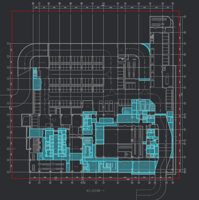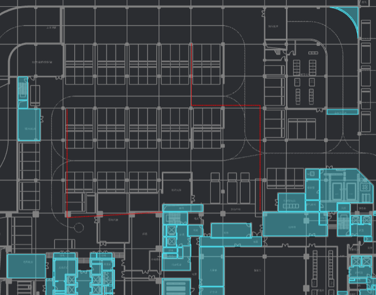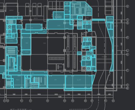 在完成上一步“图层识别”步骤后,点击“下一步”按钮,图纸自动跳转至“区域信息”界面,此时右侧的按钮处于“区域显示”状态。