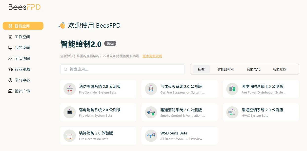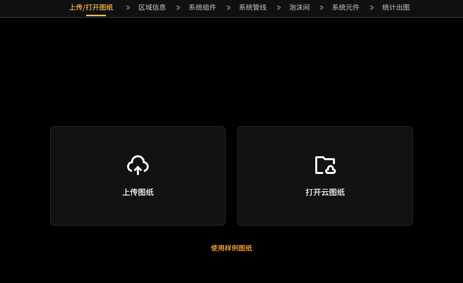 鼠标点击需要进入的系统应用,比如“消防喷淋系统”图标,进入下一页面,继续点击“启动应用”图标,即进入“上传/打开图纸”页面(如下):