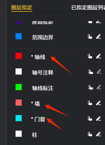 特别注意下图三“图层指定”栏中,带*号的轴线,墙,门窗这三个层一定要指定。